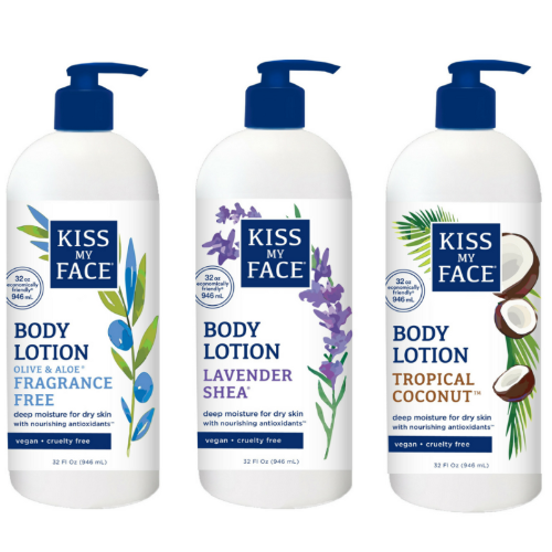 As a Kiss Tribe blogger, I received Kiss My Face’s newest body lotion in their new 32 ounce size which makes it more economically and environmentally friendly. With enticing fragrances such as Lavender Shea, Tropical Coconut, and Olive & Aloe Fragrance Free, any of these lotions would be great to use daily and all day. My favorite scent is lavender and while I’m not a big fan of coconut, coconut oil does have additional health benefits for the body. All of the lotions come with a convenient dispenser top so it’s easy to keep the hands clean while I’m lathering up the lotion.