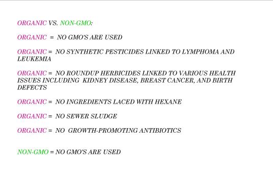 But which is better for you? Organic or non-GMO? Well, organic products go through strict guidelines under the USDA organic certification process. There are so many steps to ensure your products are indeed organically made and grown that sometimes products can get quite costly. Below, I’ve outlined the vast differences and how you can make wiser decisions in the food and products you buy. Buying organic is always best but sometimes it’s not possible so always look for the non-GMO Project verified label to ensure your food does not contain “frankenstein” organisms.